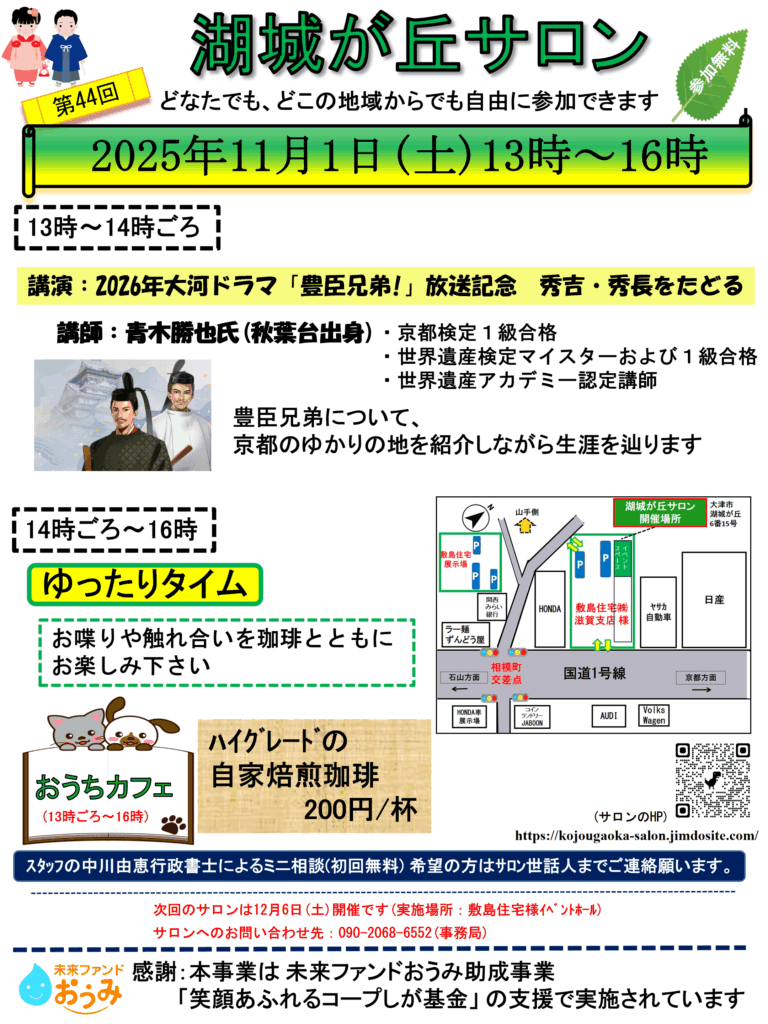 【11/1】採択事業:湖が丘サロン 2026年大河ドラマ「豊臣兄弟!」放送記念 秀吉・秀長をたどる