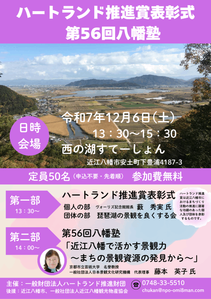 【問合せ・申込み】一般財団法人ハートランド TEL:0748-33-5510